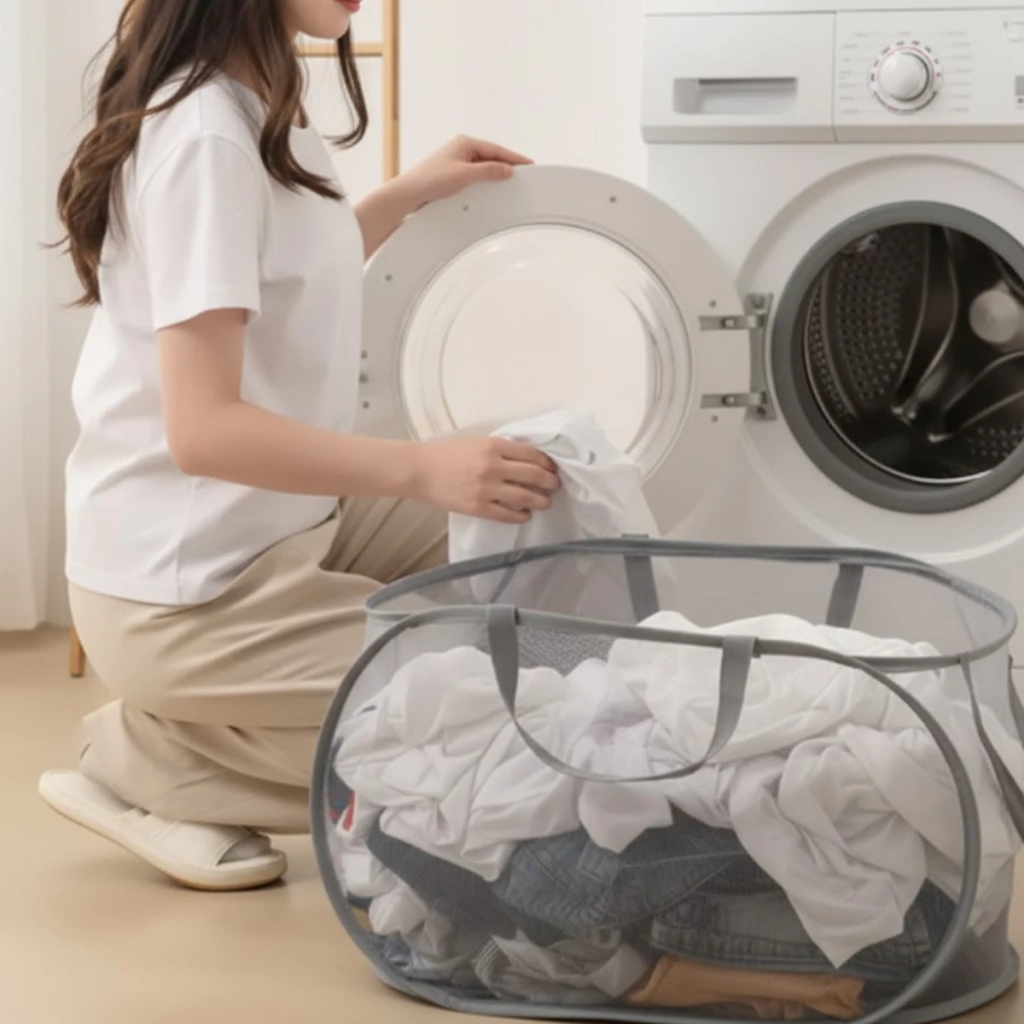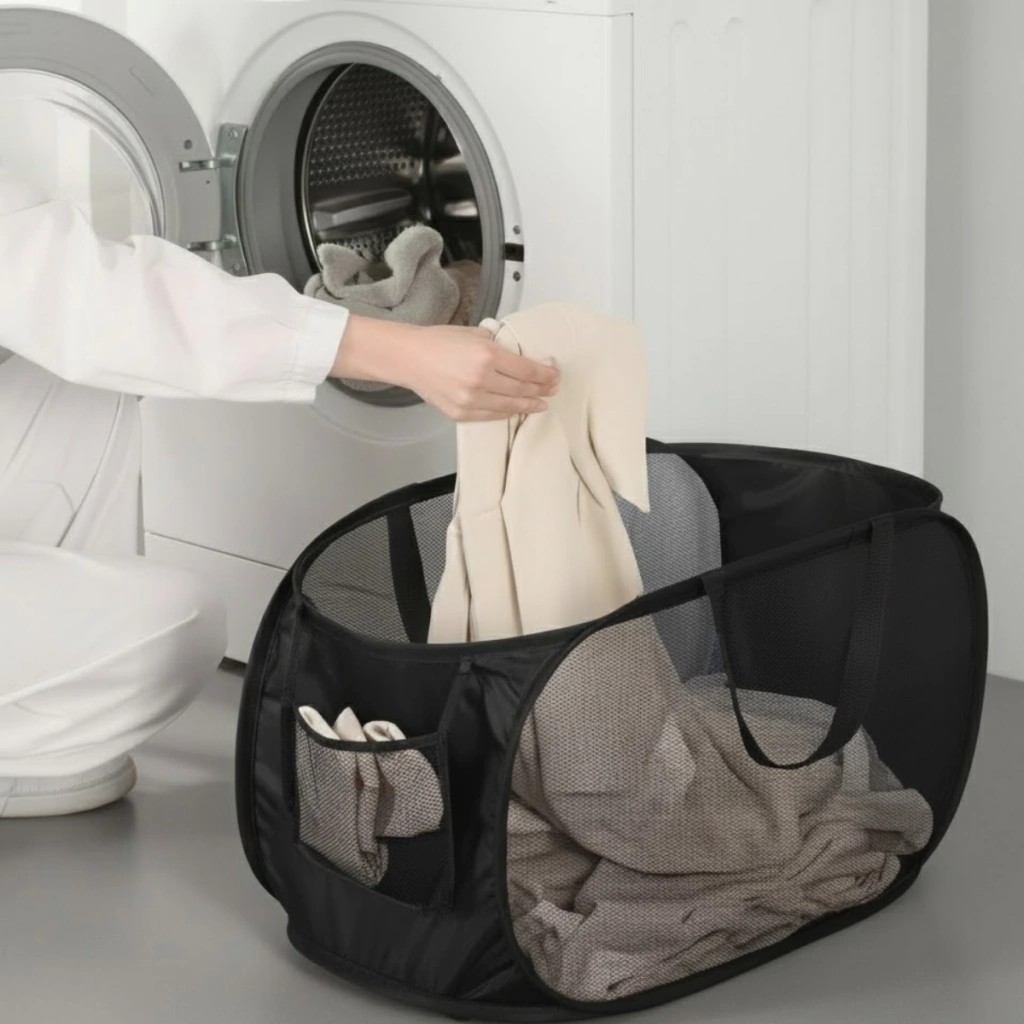 Uso Principal: Funciona como un cesto de ropa sucia, ideal para su uso en lavanderías, dormitorios, o baños. Su diseño de malla permite una excelente ventilación, ayudando a prevenir la acumulación de humedad y malos olores en la ropa.